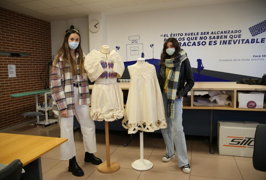 Una de las claves que destacan tanto Leire como Marta es que “durante este curso estamos trabajando de forma más intensa en la manipulación de los materiales y sobre proyectos más visuales en los que se refleja el aprendizaje de los cursos anteriores”. Finalizado el proyecto, las alumnas hacen balance del trabajo realizado y reconocen que “hemos gestionado muy bien este proyecto a pesar de que ha resultado un poco estresante, pero ver cómo el diseño final se asemejaba tanto al boceto inicial es muy gratificante”, y también ponen de manifiesto que “ha sido un proceso muy rápido, porque cuando desarrollamos una colección, lo hacemos desde inicio de curso, pero esto ha sido una cuestión de dos meses”.